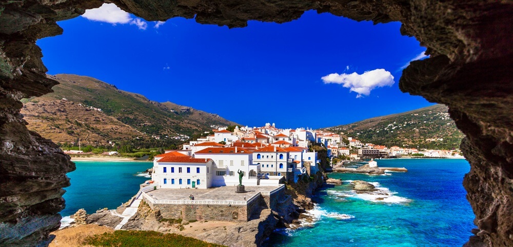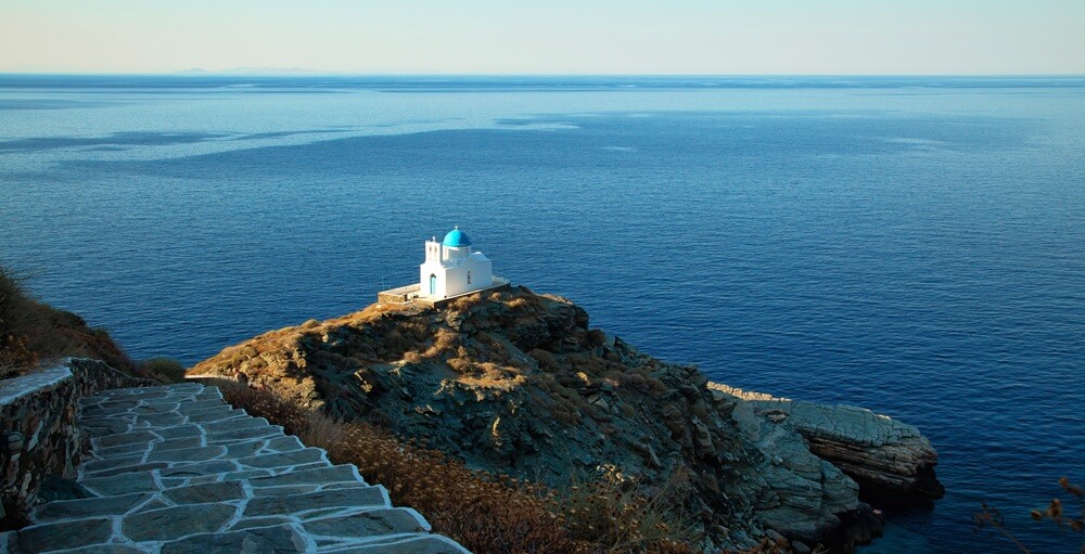 Andros is one of the greenest and most lush islands in the Cyclades and is ideal for walkers and those looking for an active holiday with a great network of hiking trails that link picturesque villages, chapels, and scenic viewpoints. Fed by natural springs and streams, its landscape includes forests, waterfalls, and terraced hillsides.